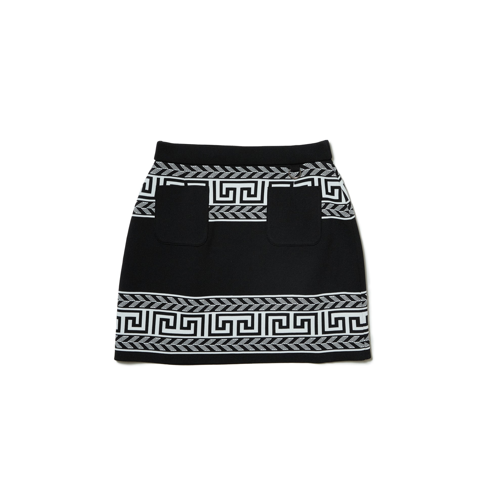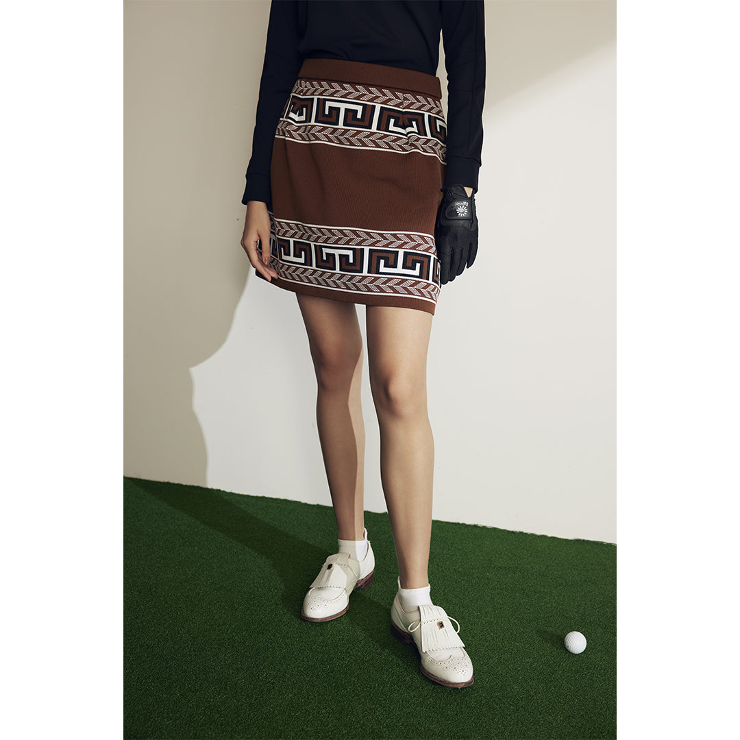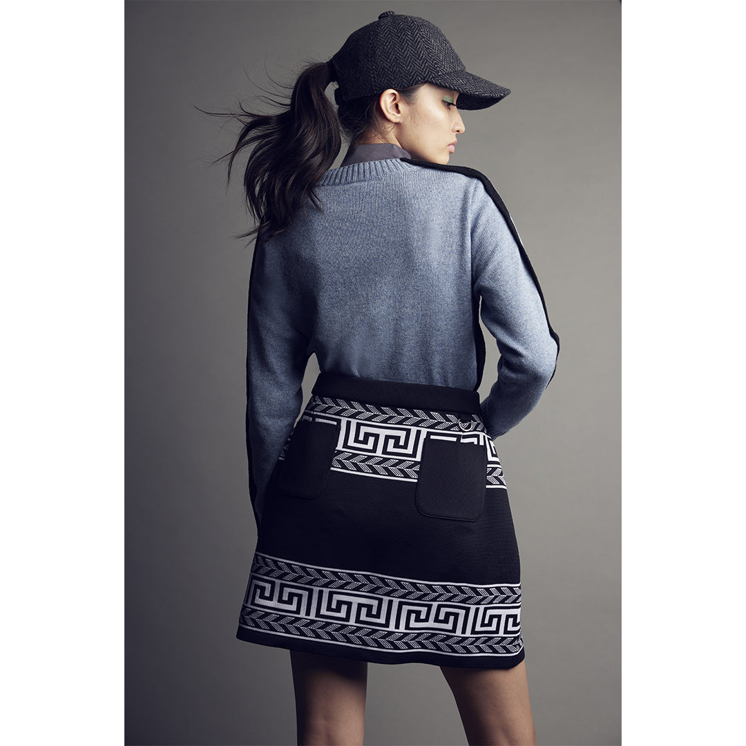 グレカパターンが特徴的で、ユニークな表情のニットスカート。
