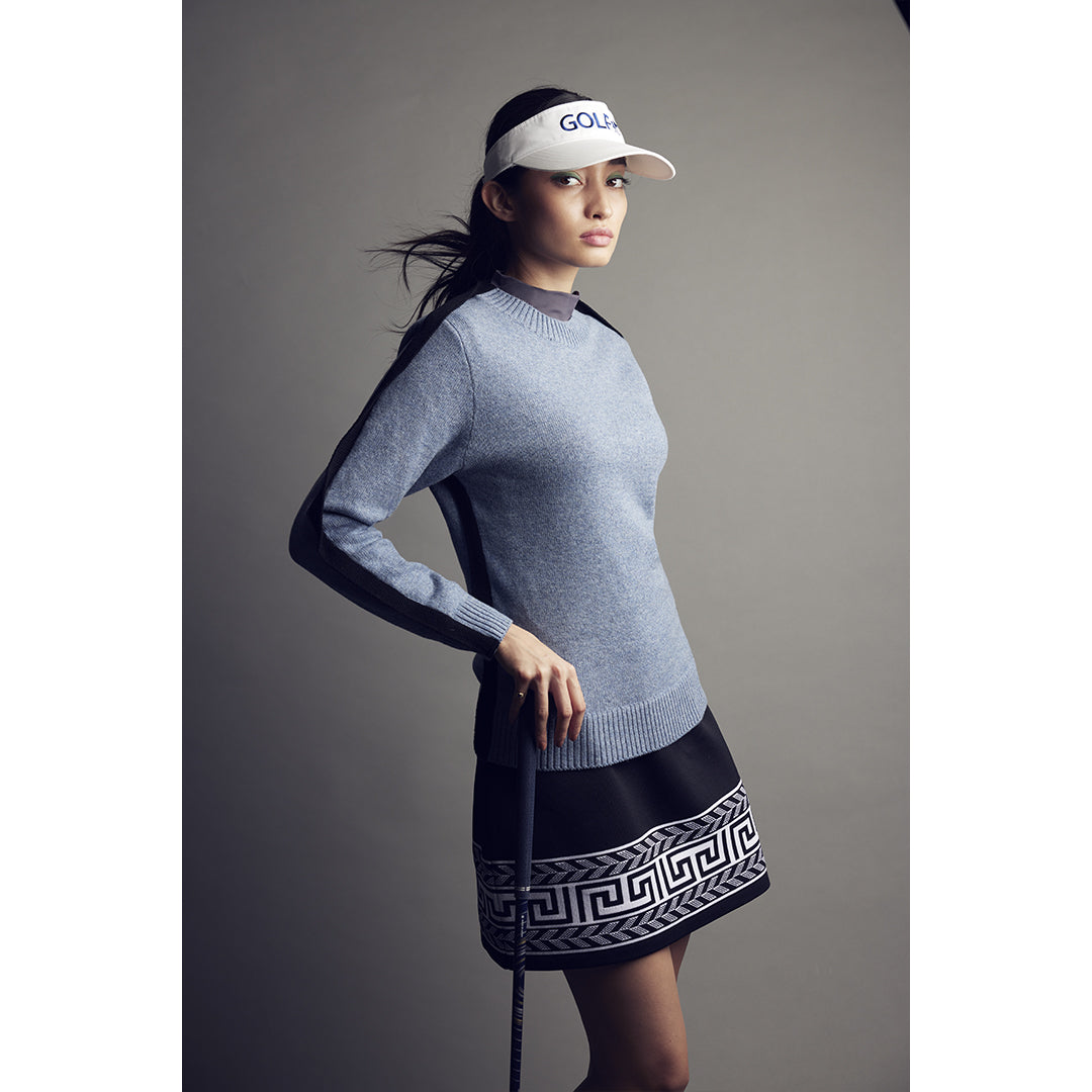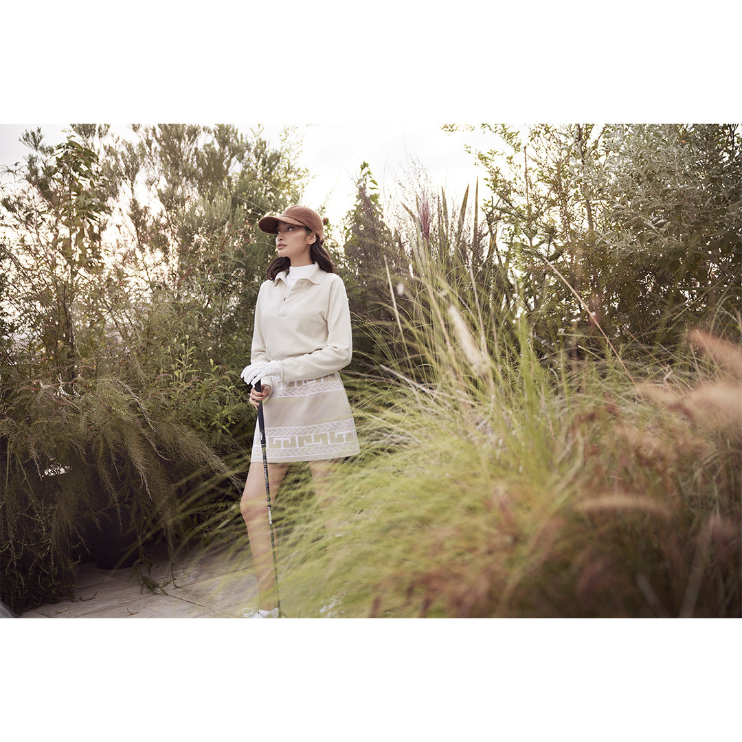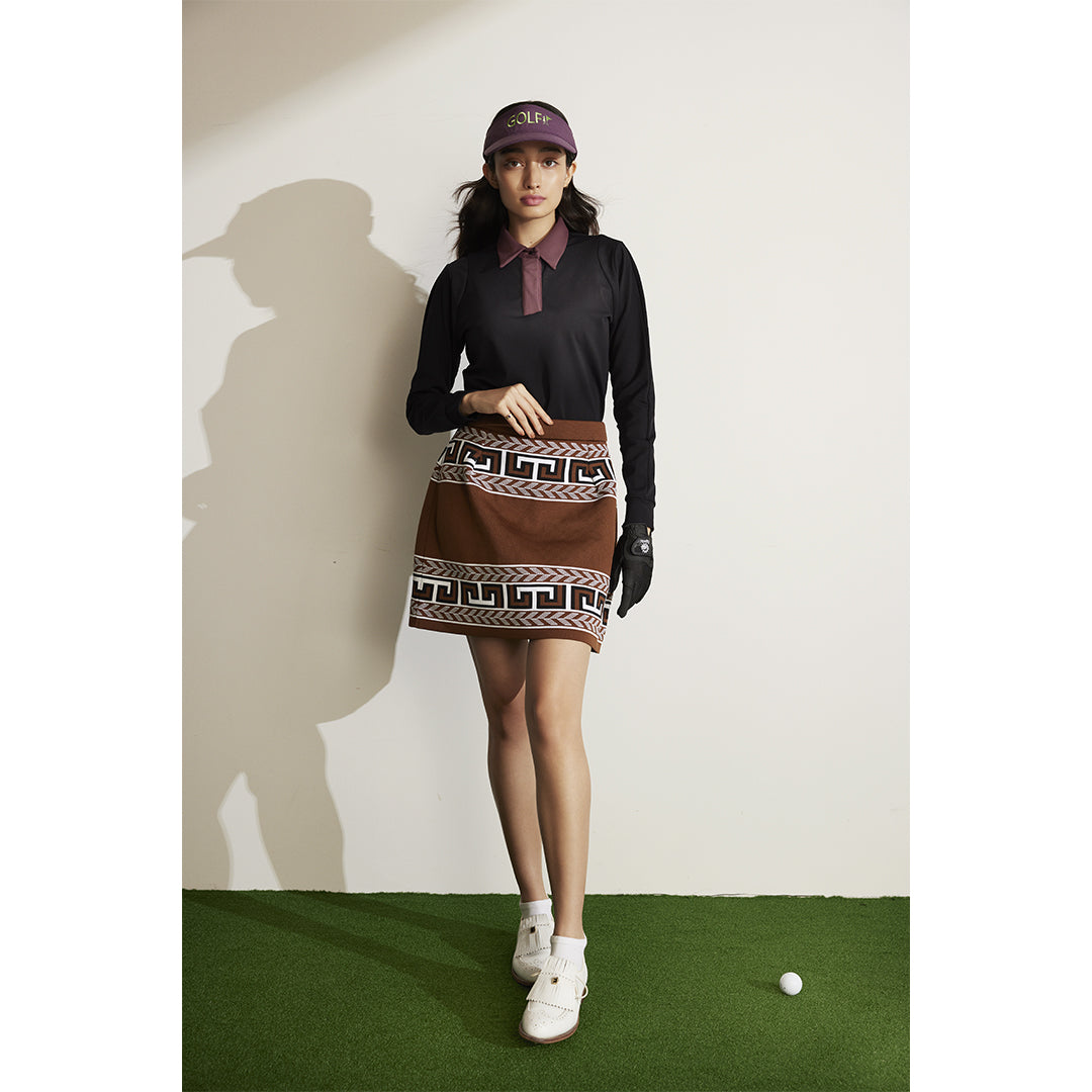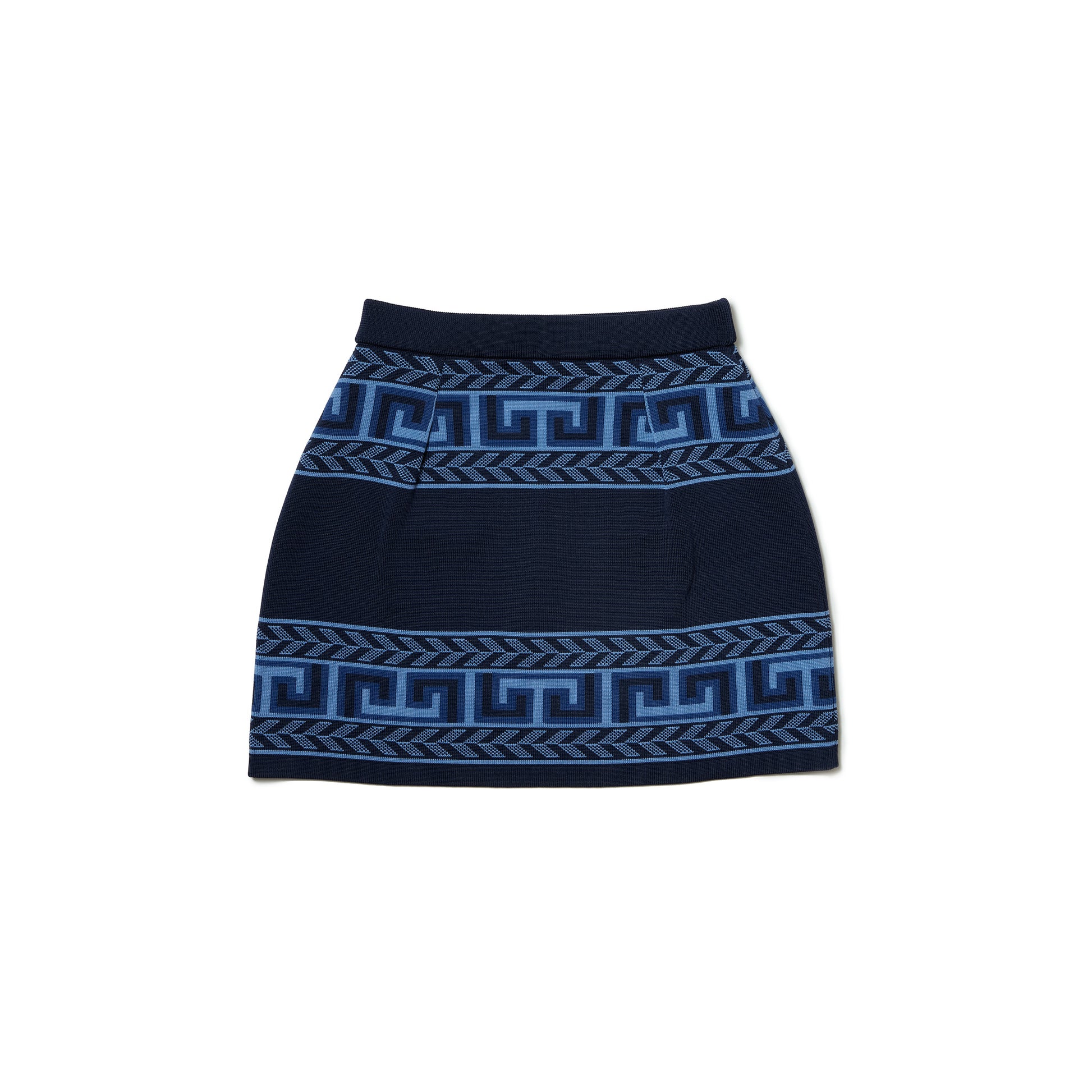 グレカパターンが特徴的で、ユニークな表情のニットスカート。